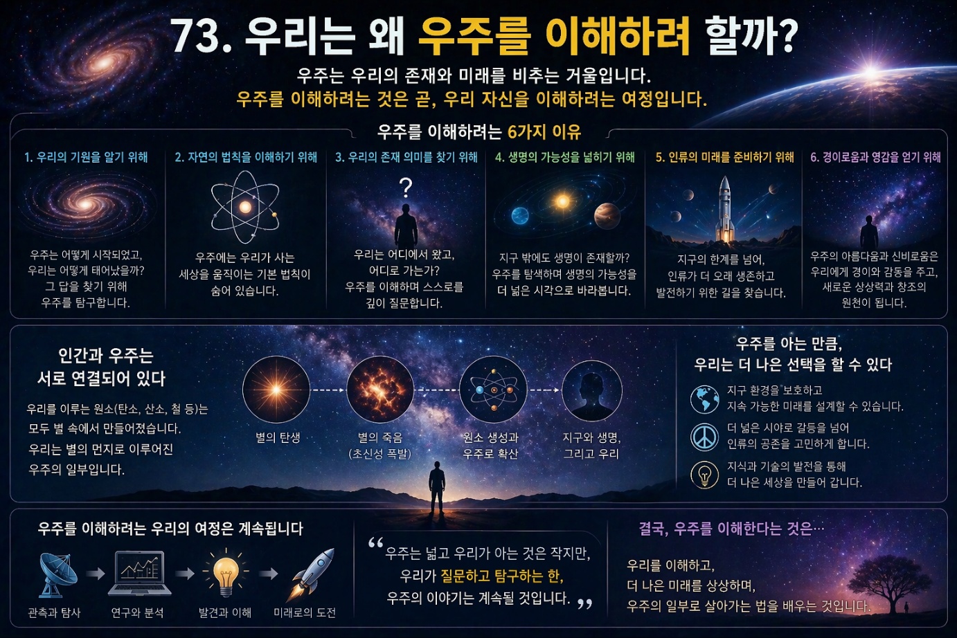 우주를 이해하려는 이유는 결국 인간 자신과 존재의 의미를 이해하기 위해서다.