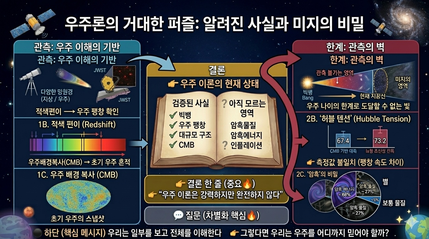 ✔️ 한 줄 정리: 우주 이해는 끝나는 것이 아니라 계속 확정되는 과정이다.